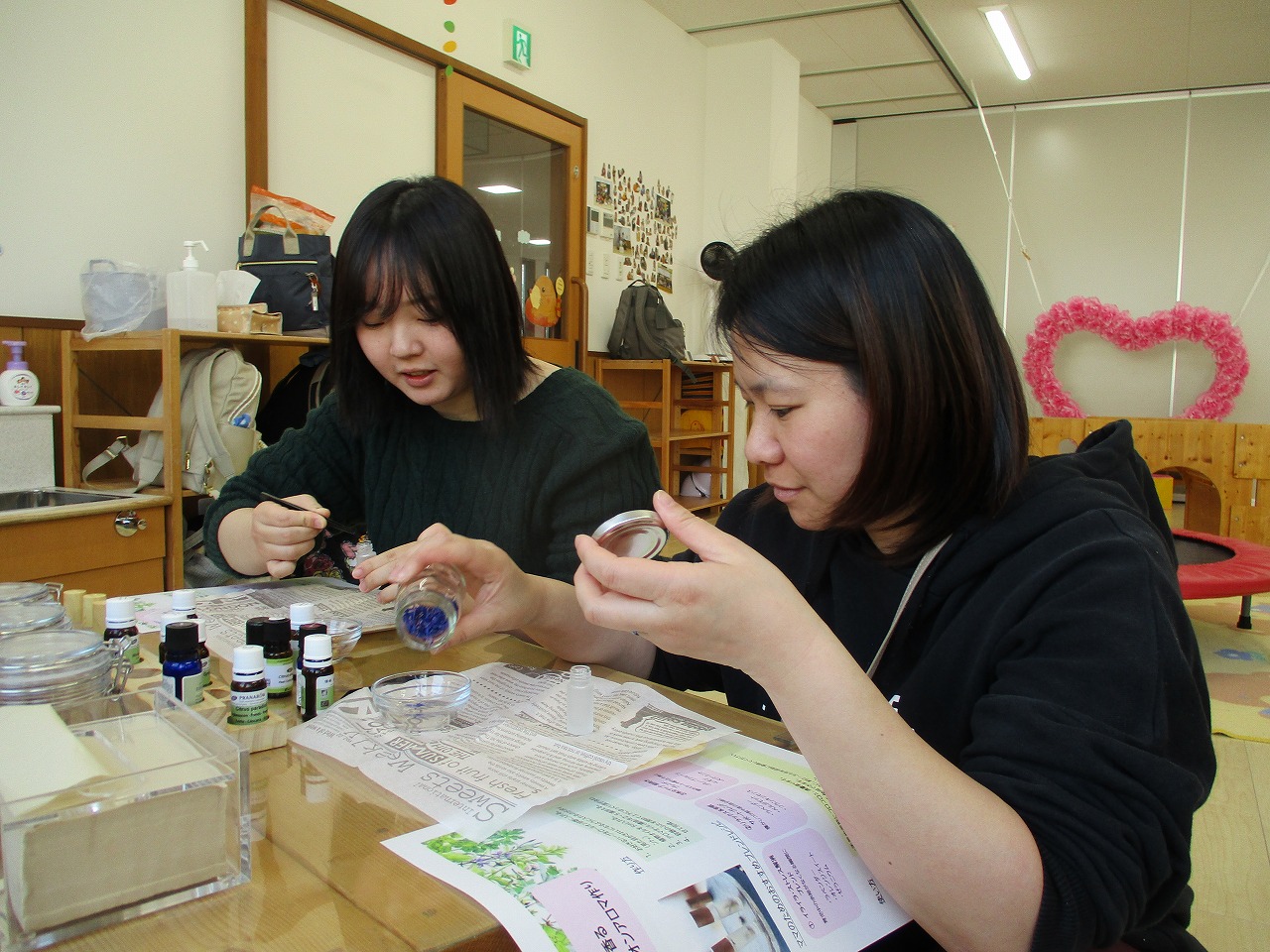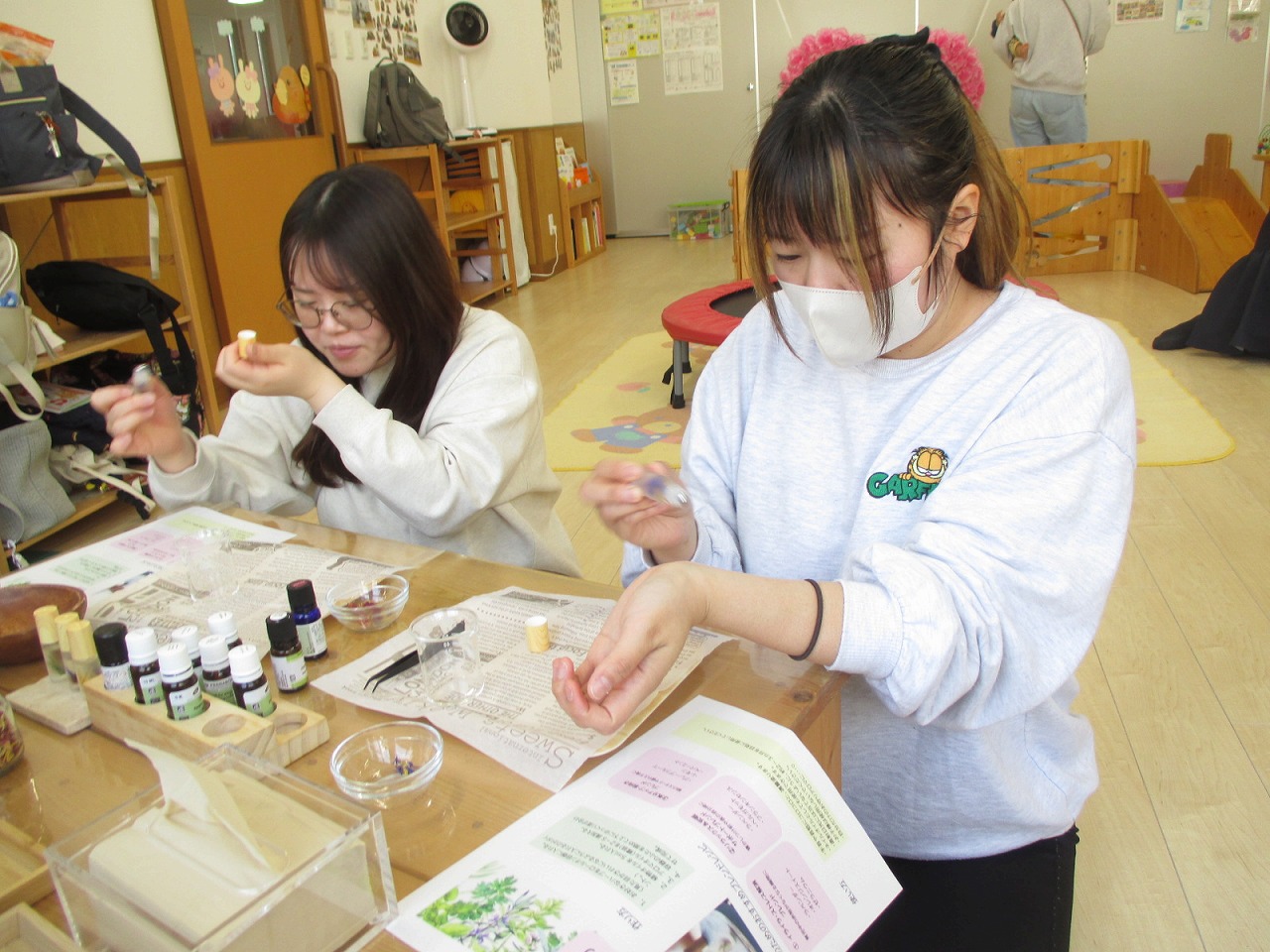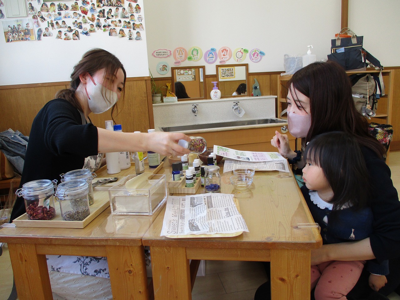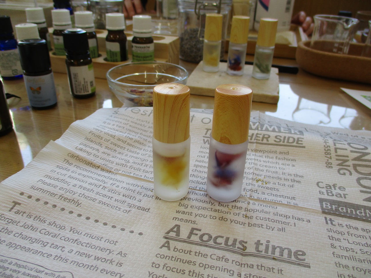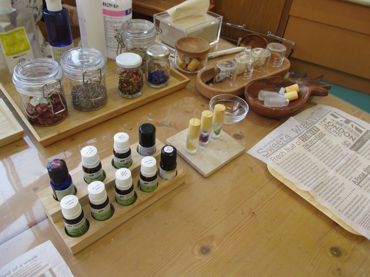 安部さんよりアドバイスをいただきながら、数種類から好みの香りを選んだり…リラックスや花粉対策に効果があるものをブレンドしていきます(柑橘系の香りが人気でした🍊)
