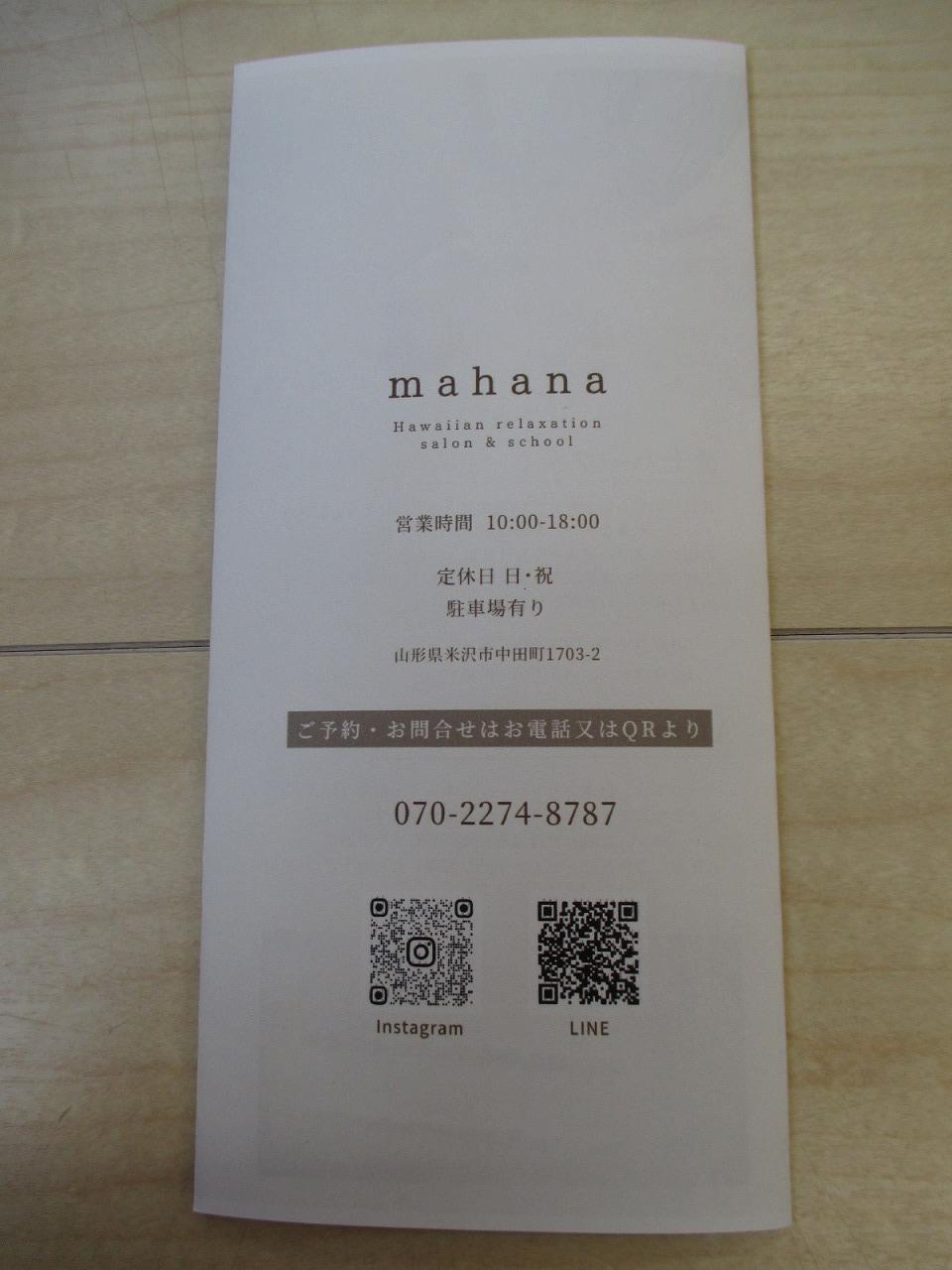 米沢市中田町に『ハワイアンリラクゼーションサロン&スクール mahana🍃』をオープンされています