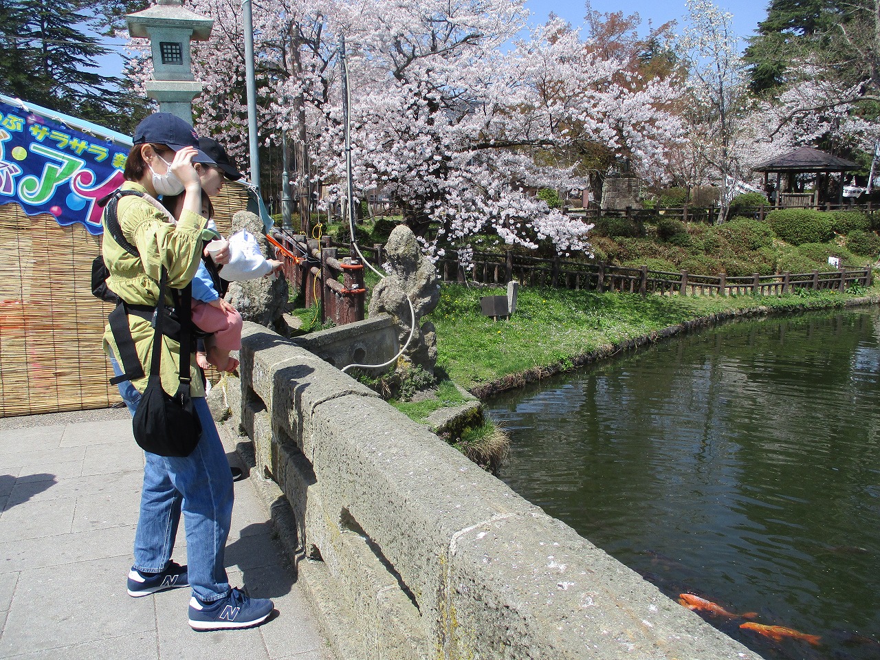 鯉にもエサをあげました🐡 ぱくぱくしながら集まってきます