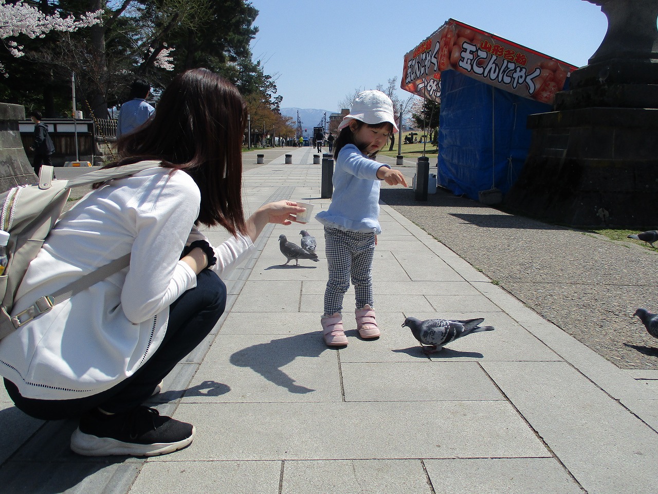 ハトさんにえさをあげたよ