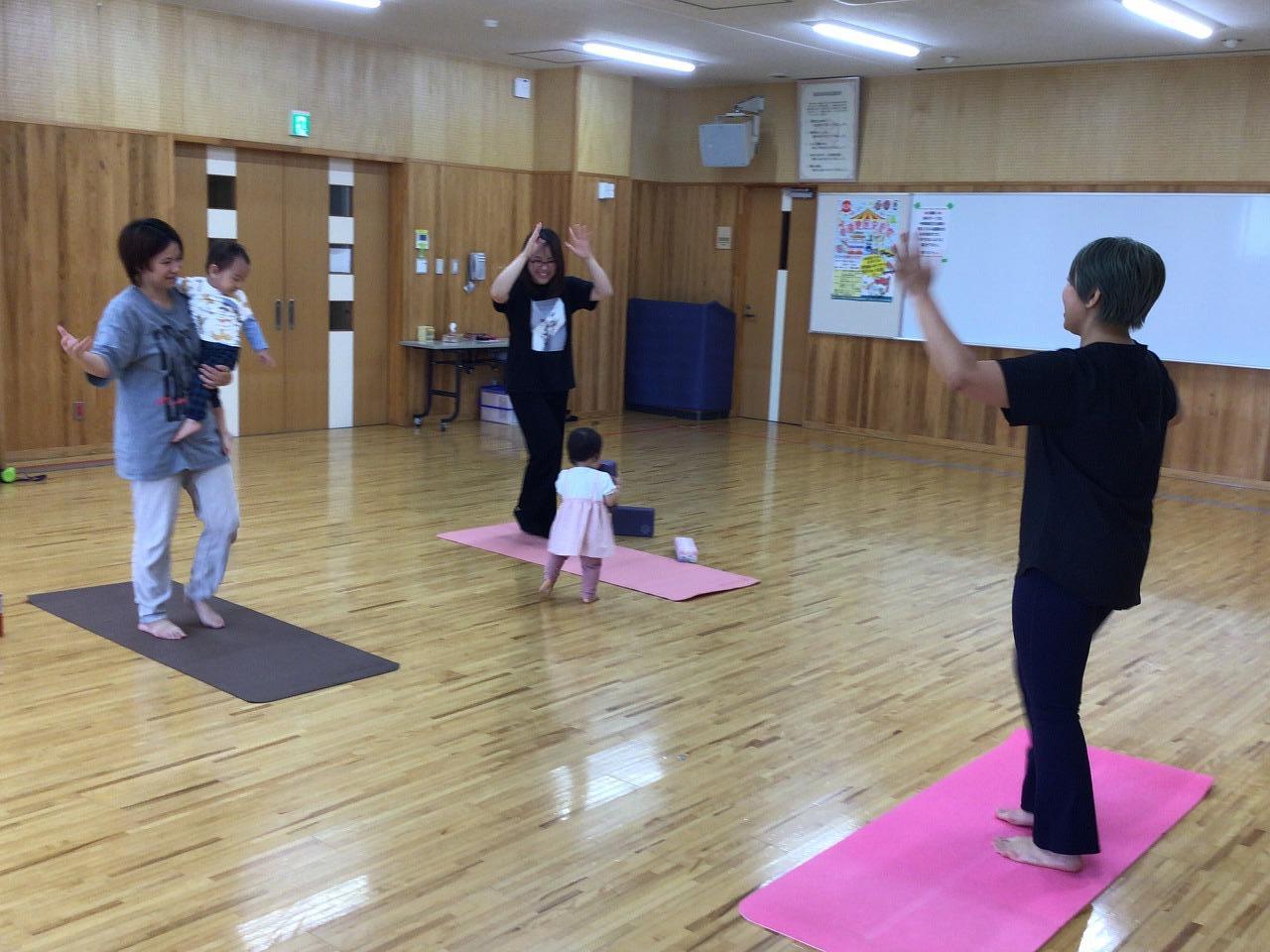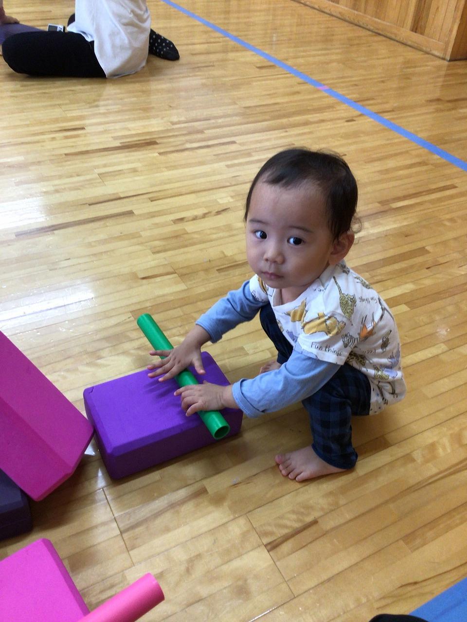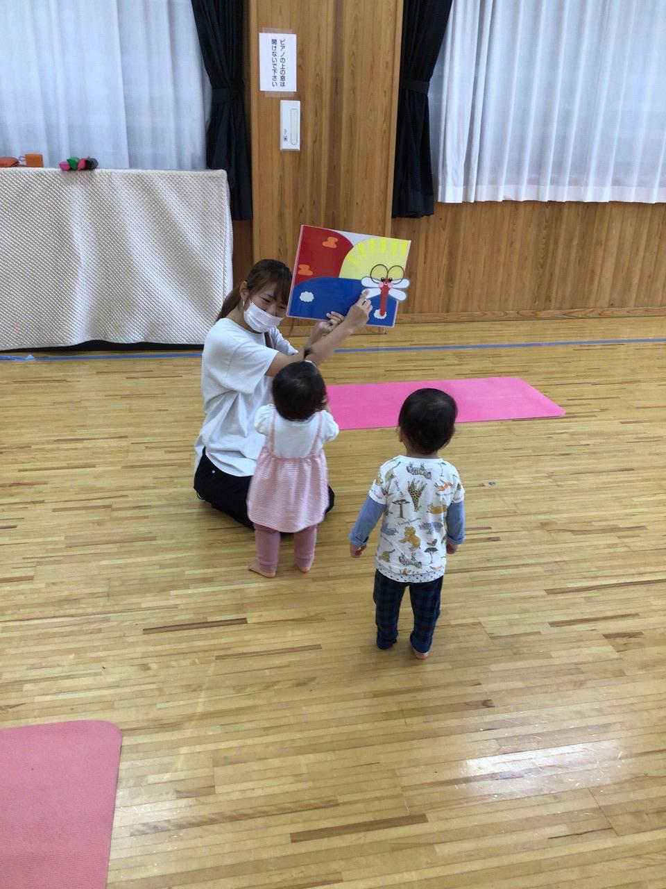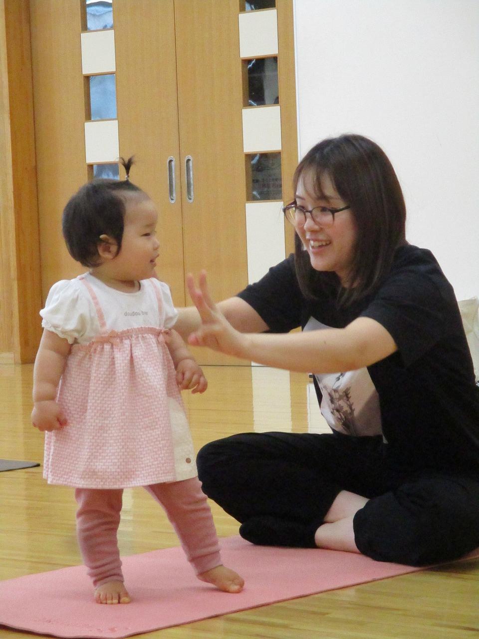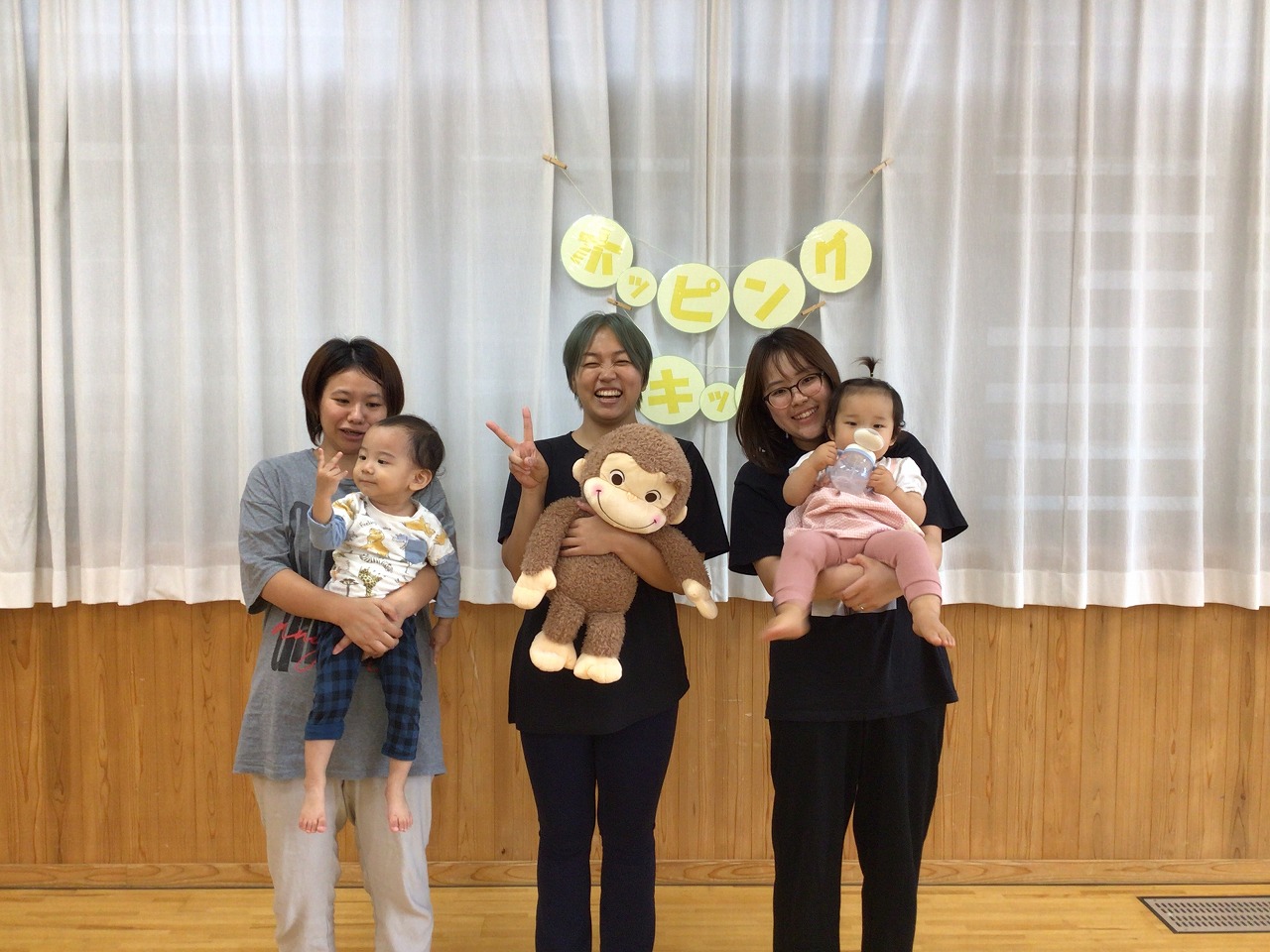 「はじまるよ♪」「あたまかたひざぽん♪」「ふうせんぷしゅー」「おててとあんよぐるぐる~」ふれあい遊びに、ママもお友だちもにこにこ😊