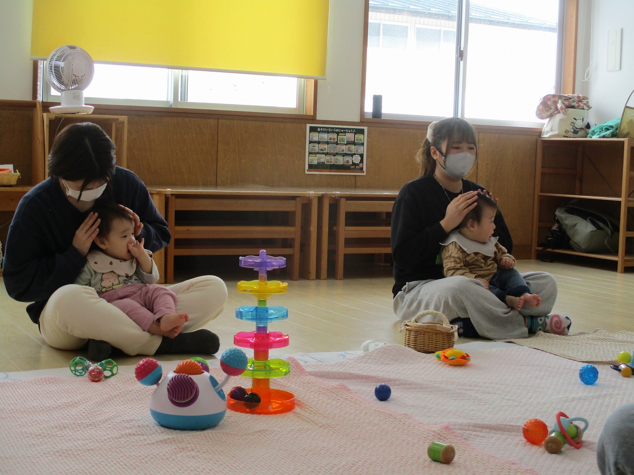 2人1組になって、「いないいないばあっ!」