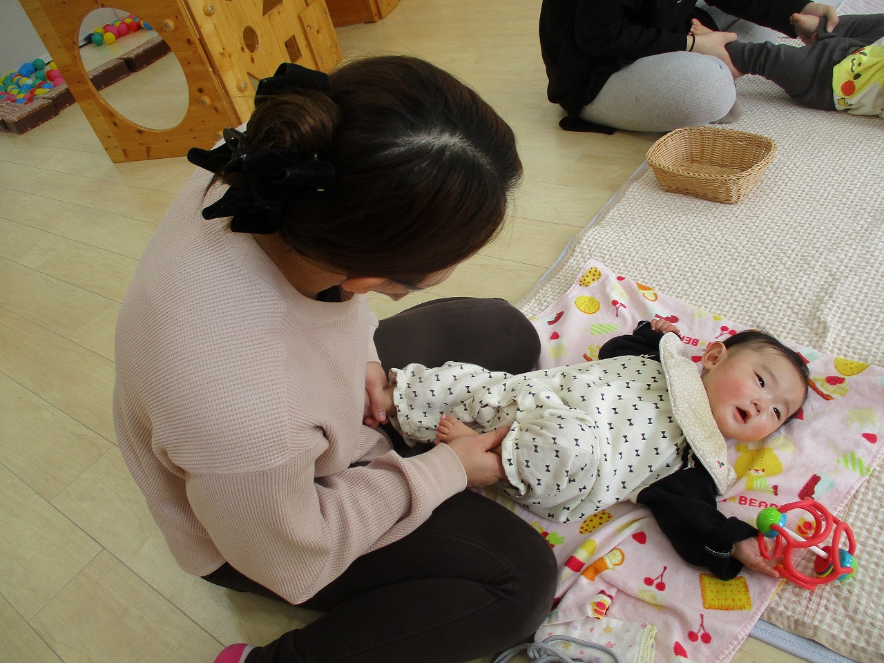 お子さんとたくさん触れ合って、ママの体をほぐして…。とても気持ちの良い時間です