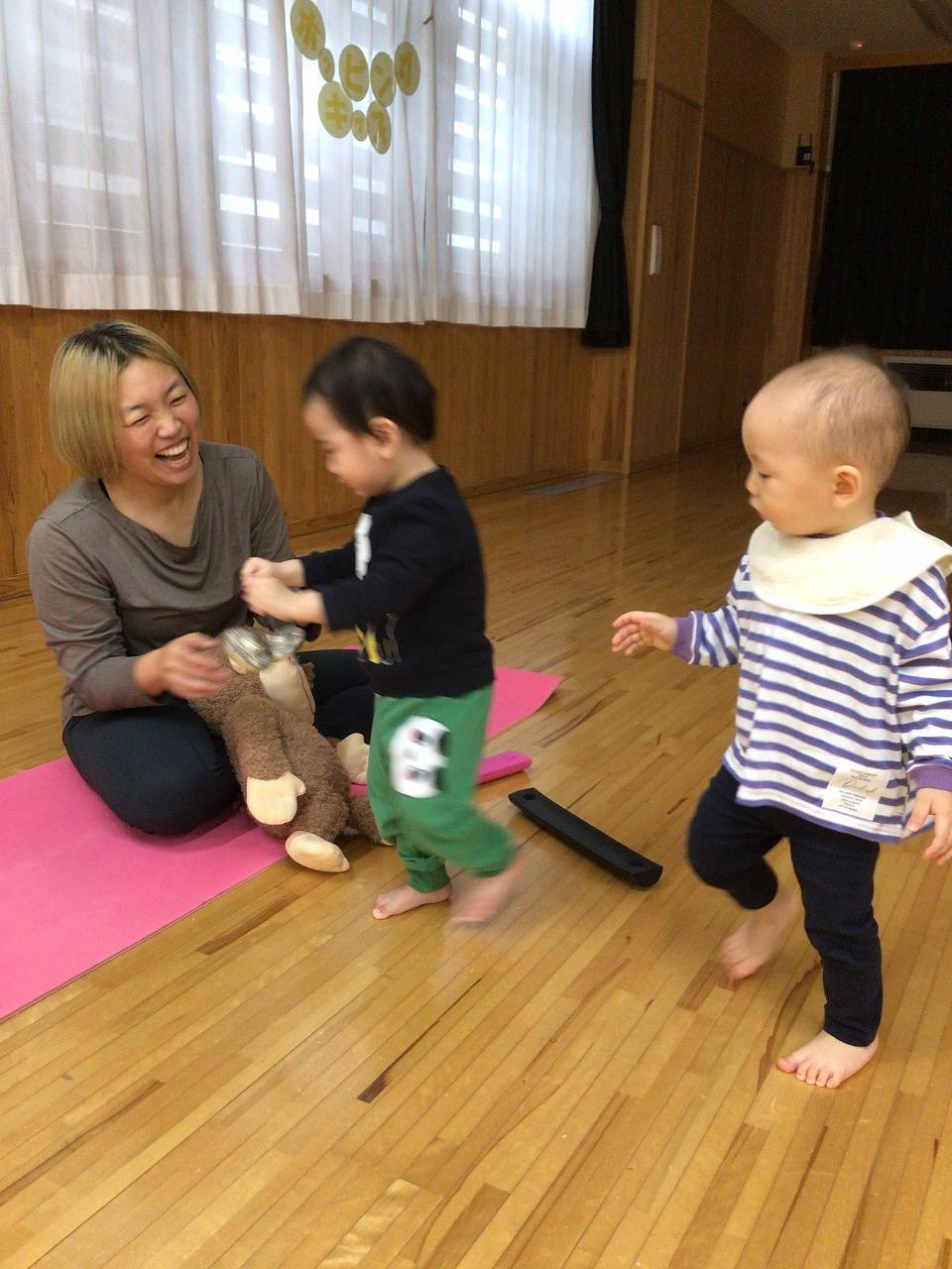 毎月親子での楽しい時間とママのためのストレッチ時間で、みなさんニコニコ