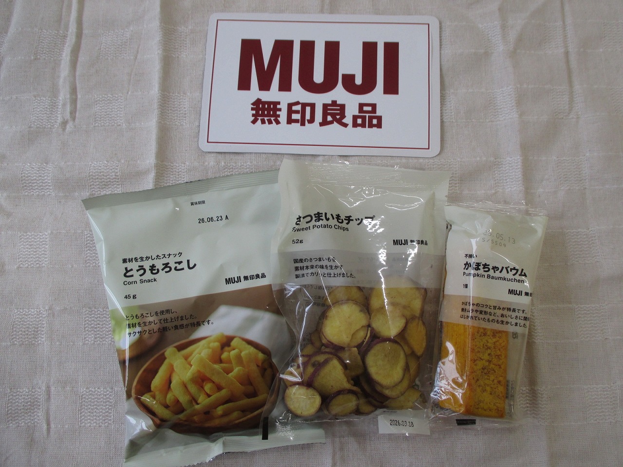 とうもろこしスナック・さつまいもチップス・かぼちゃのバームでした