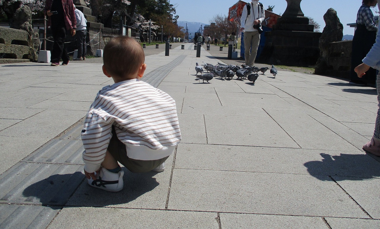 ハトさんにえさをあげたよ