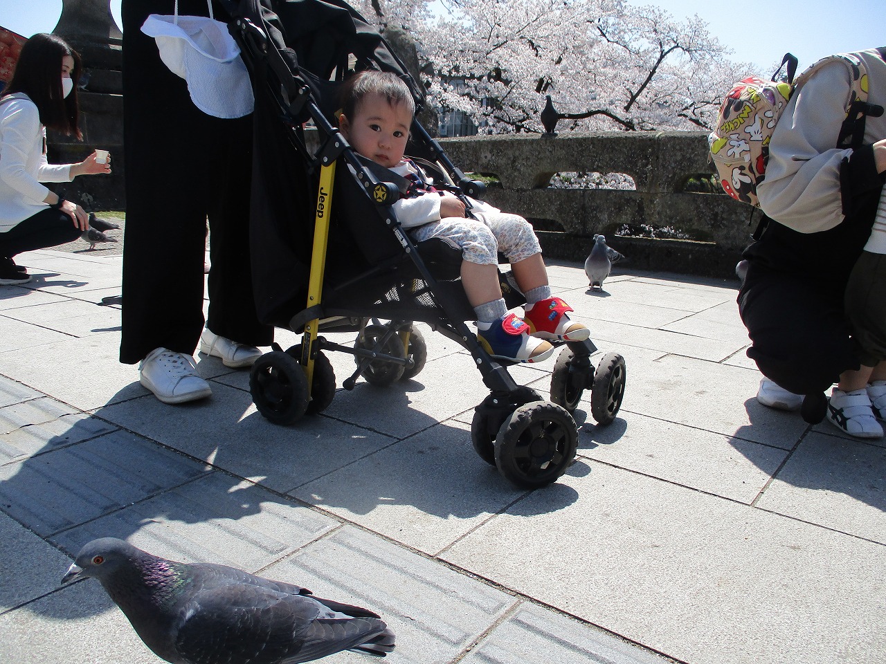 橋の方へ歩いていくと…ハトさんとご対面~🕊