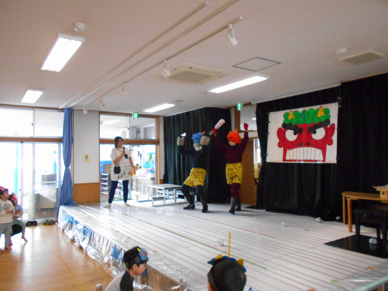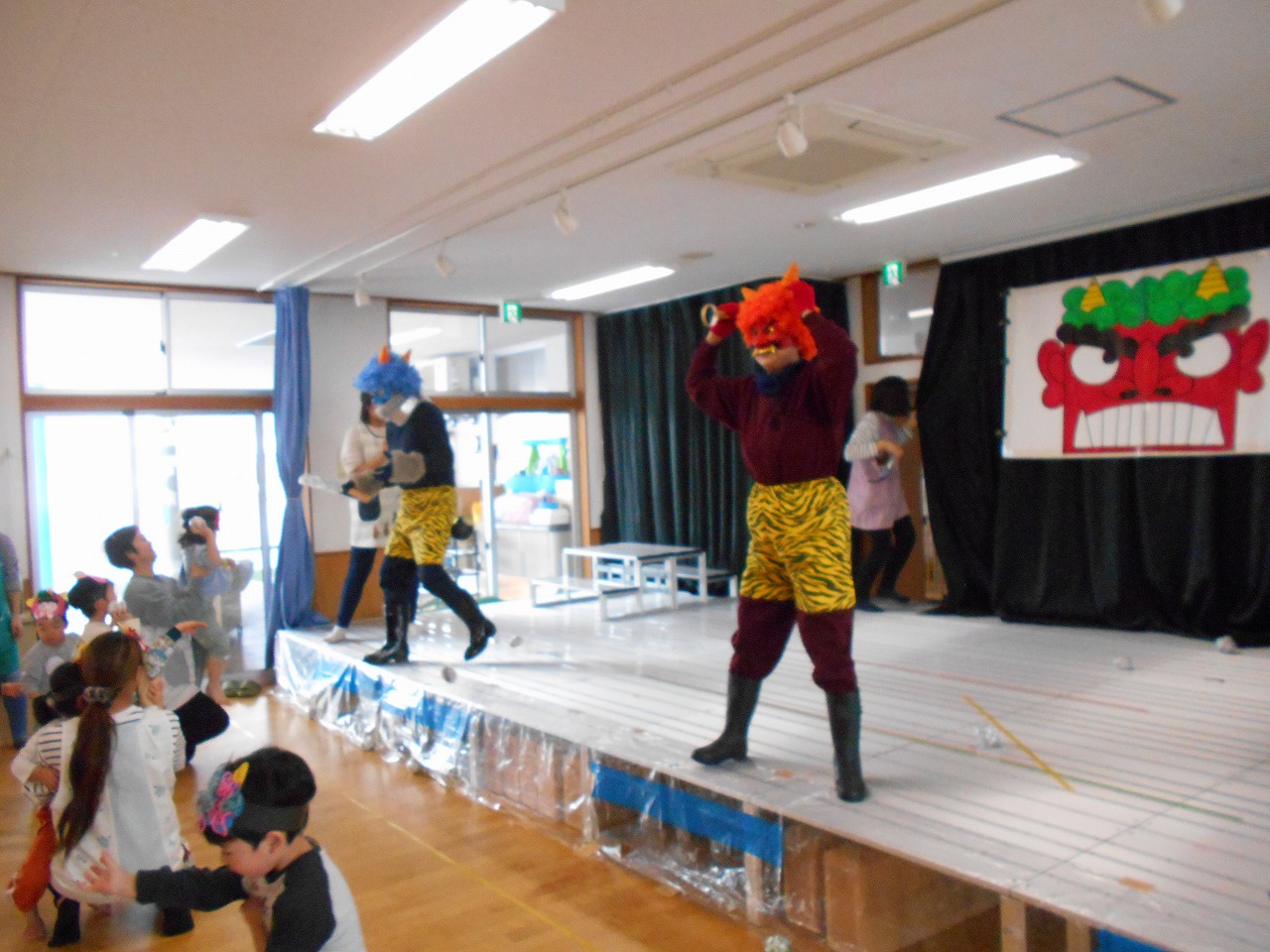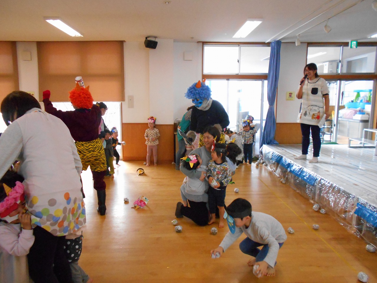 ぼくたちも、遊びながらお話を聞いているよ